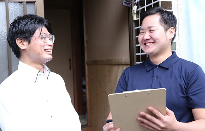 売却を検討されている不動産物件まで出向いて、土地・建物の現況を確認させていただきます。売却にあたってのご希望やご事情も詳しくお伺いします。