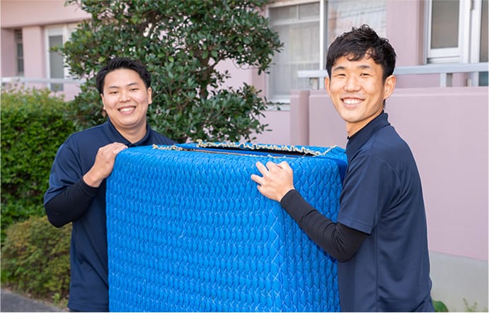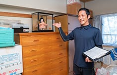 買取額をお支払いした後で、買取した不用品を迅速に搬出します。必要に応じて、養生・梱包したうえで建物を傷つけないように運び出します。