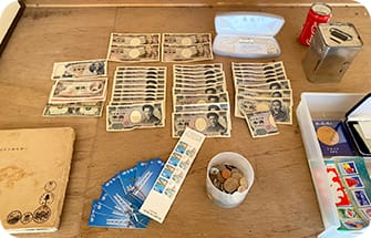 通帳・印鑑・現金などの貴重品をゴミと一緒に捨てることがないように、部屋中をくまなく探索します。分別作業中にも気を抜かずに探し出します。