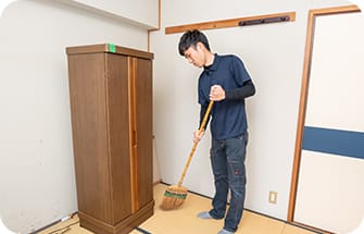 回収作業後は掃除機やほうきで細かいチリ・ホコリを取り除きます。蓄積汚れの除去には有料のハウスクリーニングがおすすめです。